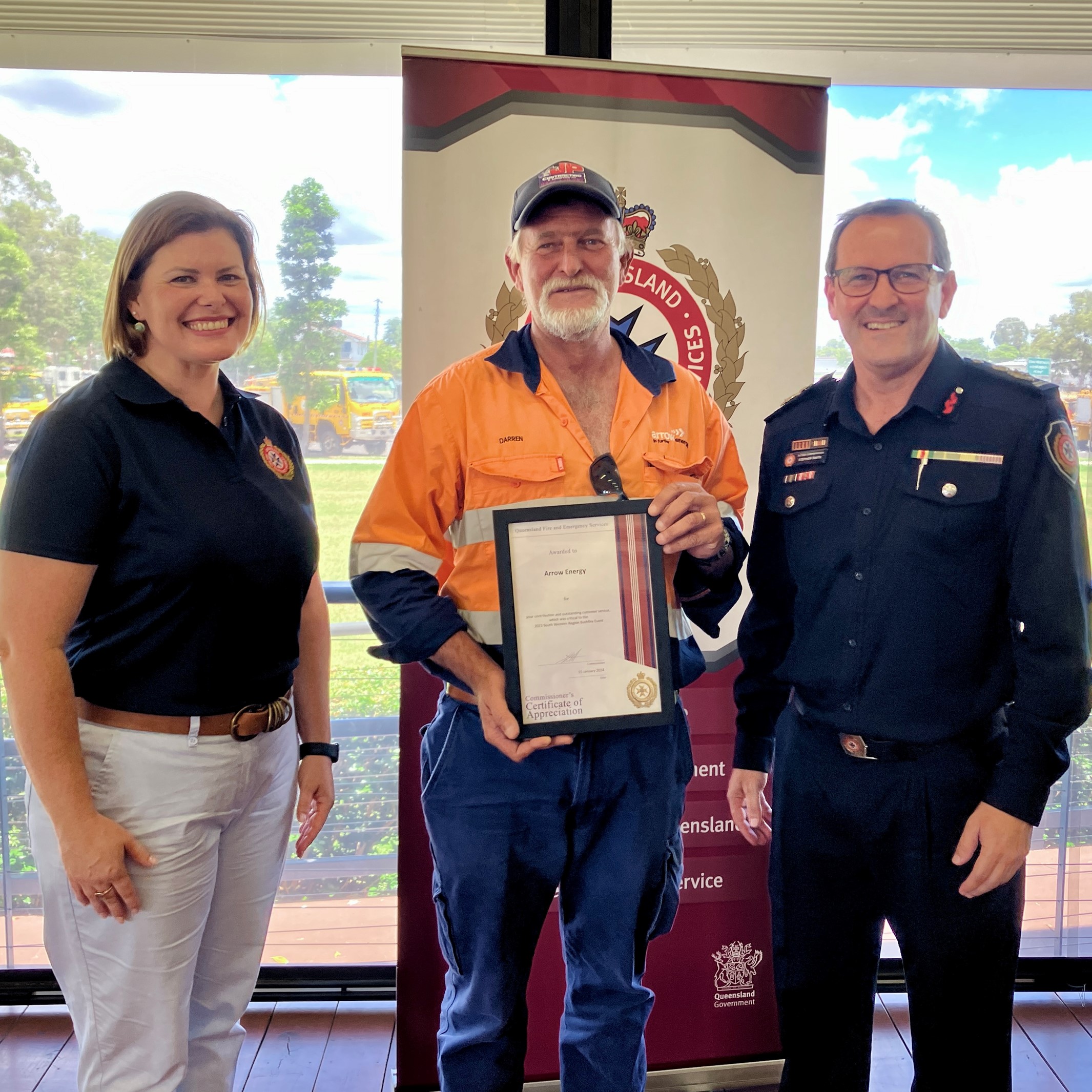 Arrow, together with several other local businesses, was recognised by the Queensland Government for its contribution to fighting last year’s bushfires at an official thank-you ceremony in Dalby on Monday 15 January.