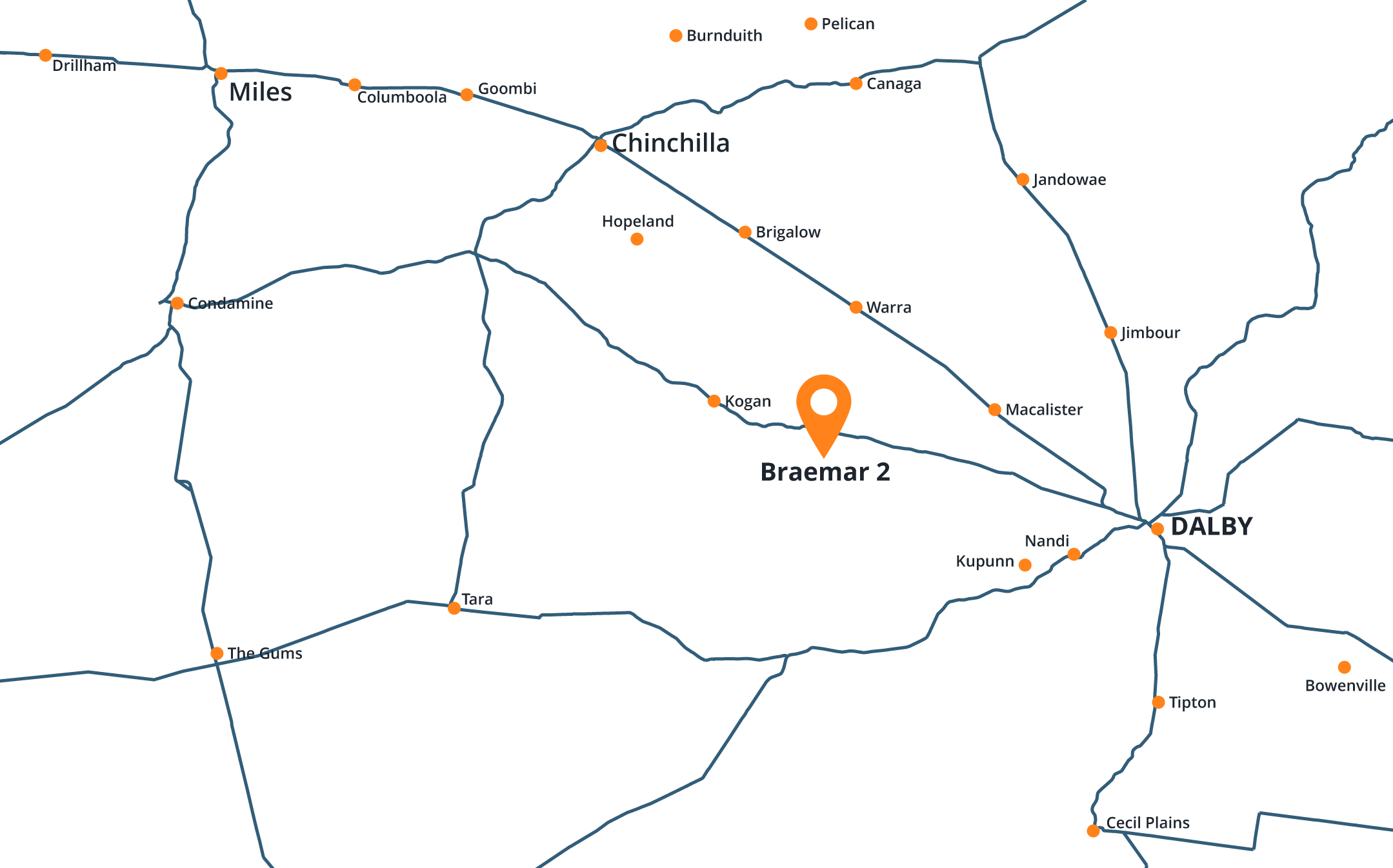 Located approximately 40 kilometres north-west of Dalby, the Braemar 2 station contributes to the National Energy Market, providing energy security to homes and businesses.